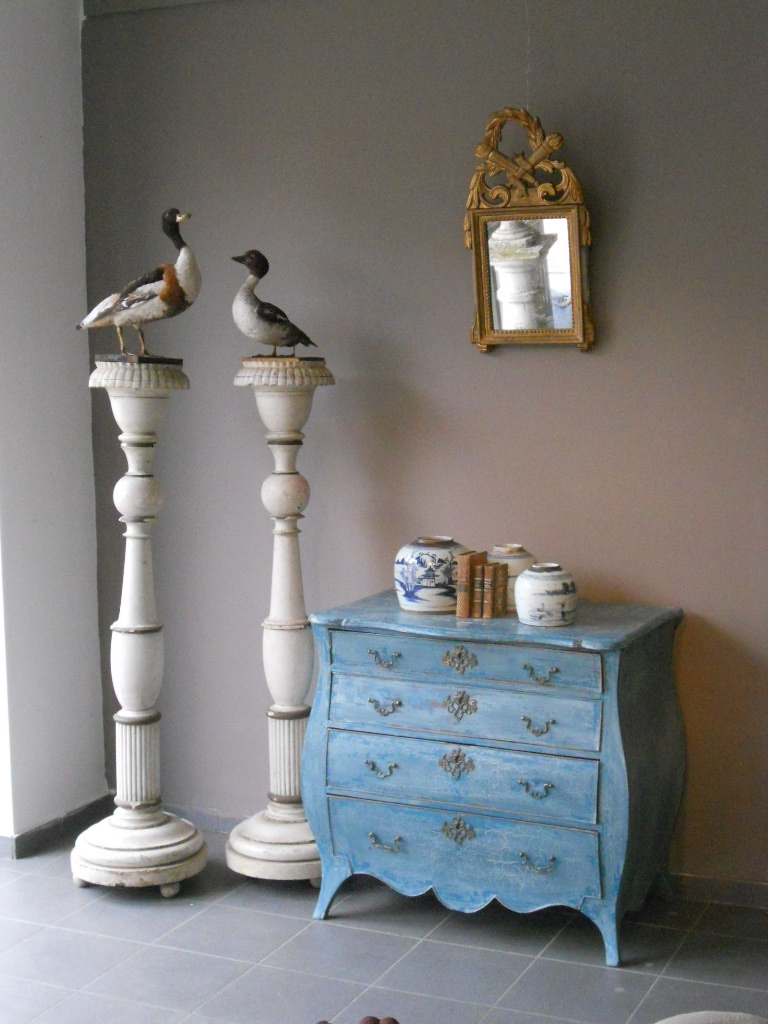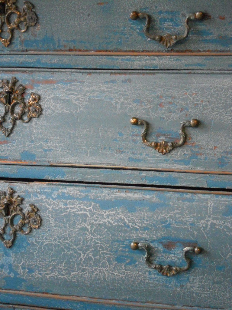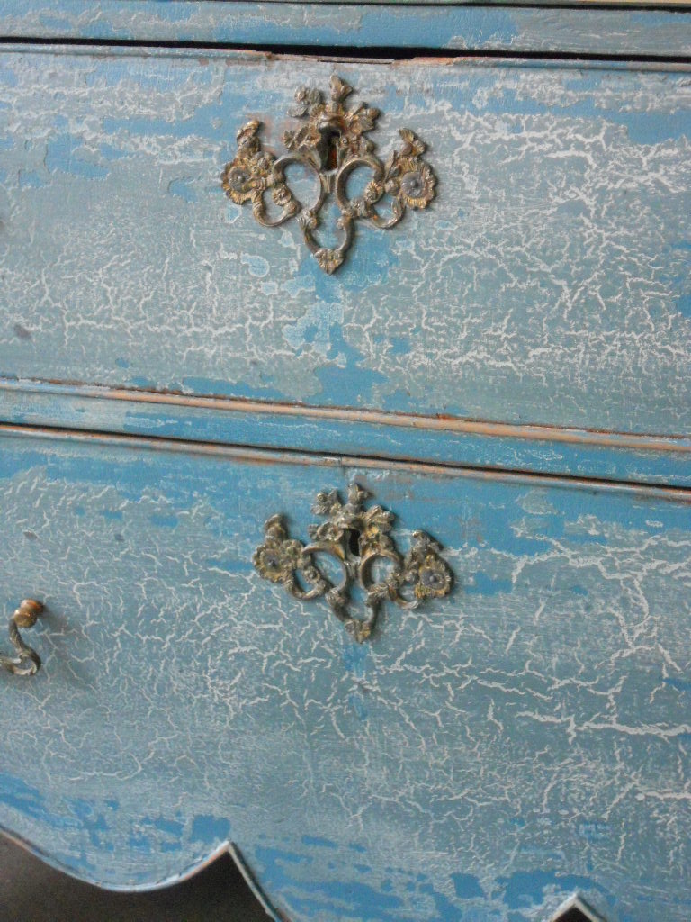Different layers of blue and greyblue on this unique chest with interesting proportions.Wide:85cm Deep:52,5cm High:79cm Circa 1860