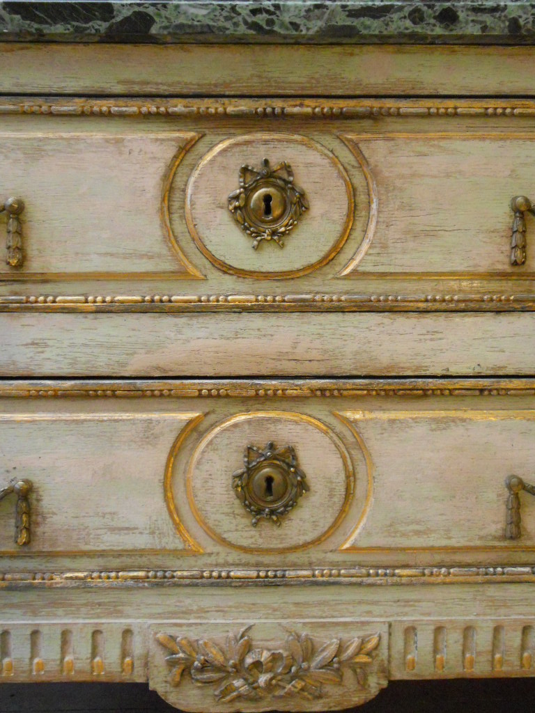 Bowed front XVIII th century chest,fruitwood and original scraped ochre paint
