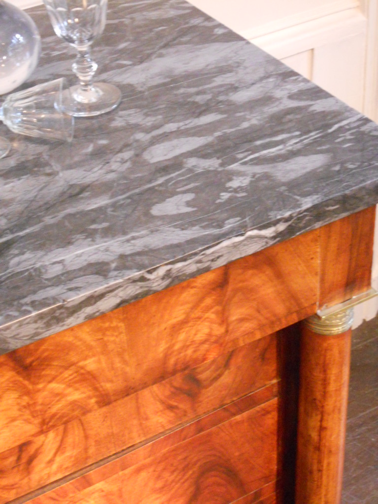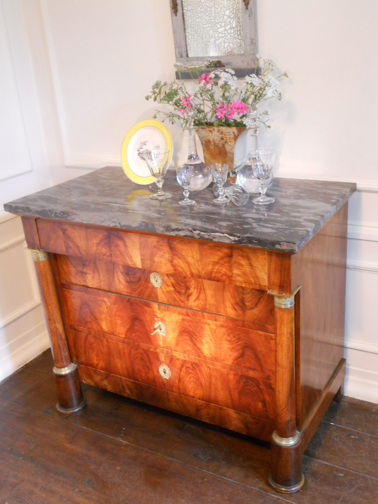A beautiful warm and rich patina for this Empire period chest.It is still retaining the original marble top.