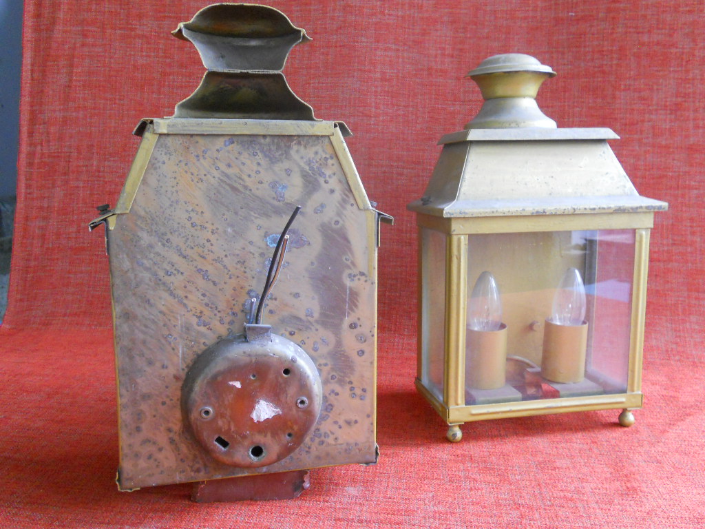 A very nice pair of walllanterns in painted iron ,all glassware in good condition H:40cm/W:24cm/D12cm First quarter XX century wired