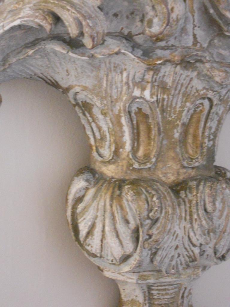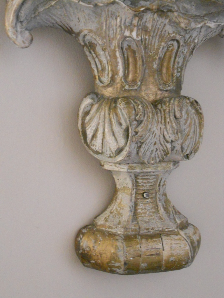 Woodsculpting of a French Medicis-vase with flowers.Fragments of the original guilding. Measurements High:56cm/Wide:36cm/Deep:12,5cm France circa 1780