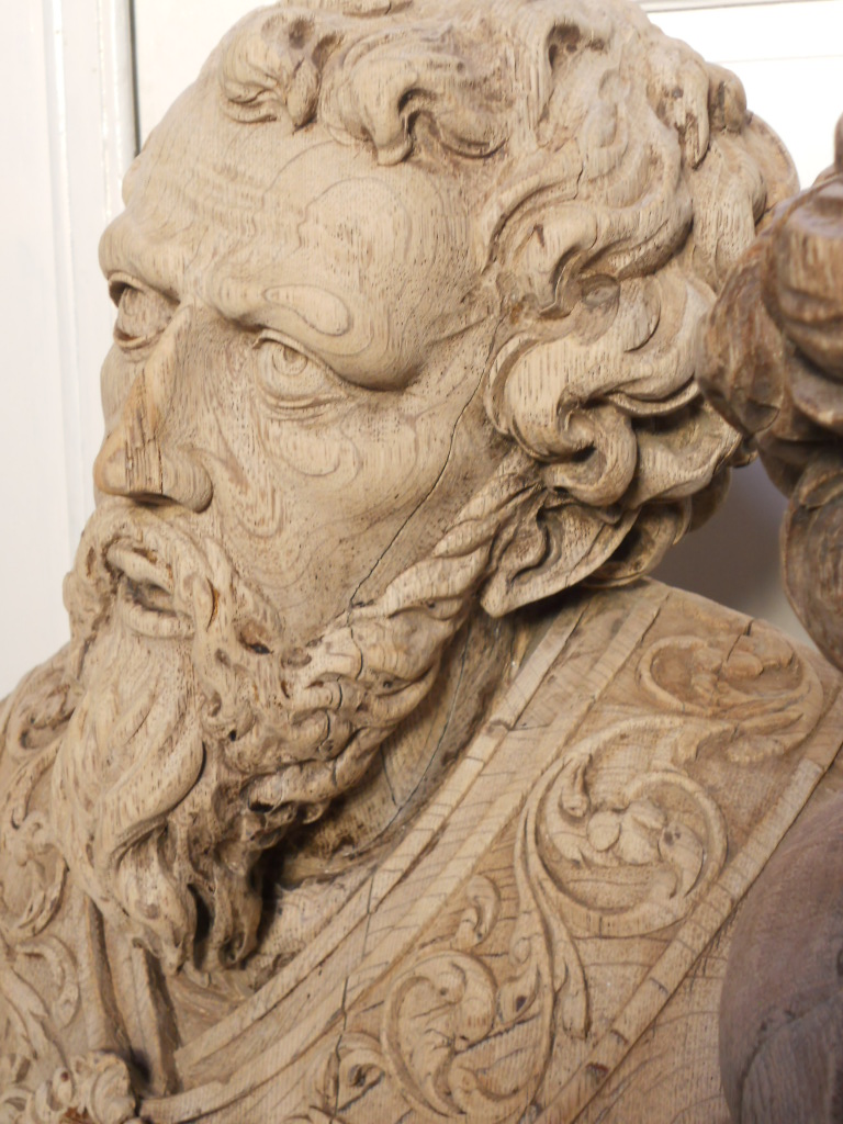 Spectacular pair of life-size bustes Flanders end 17 th century. Detailed sculpting in washed oak