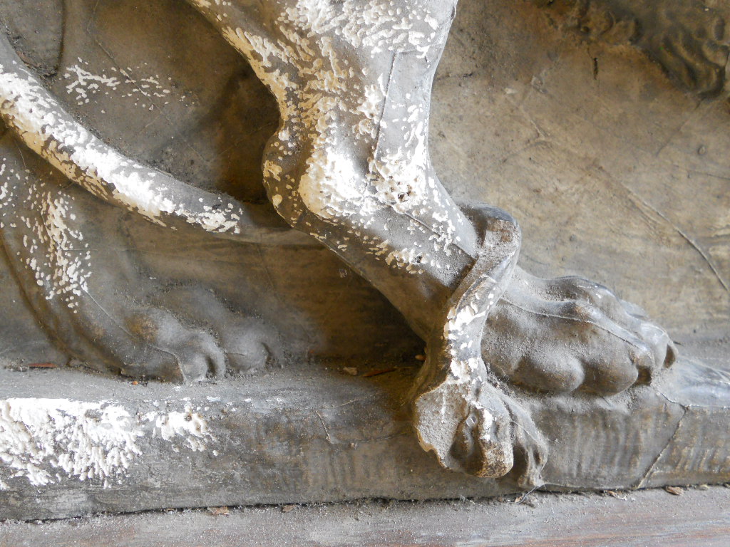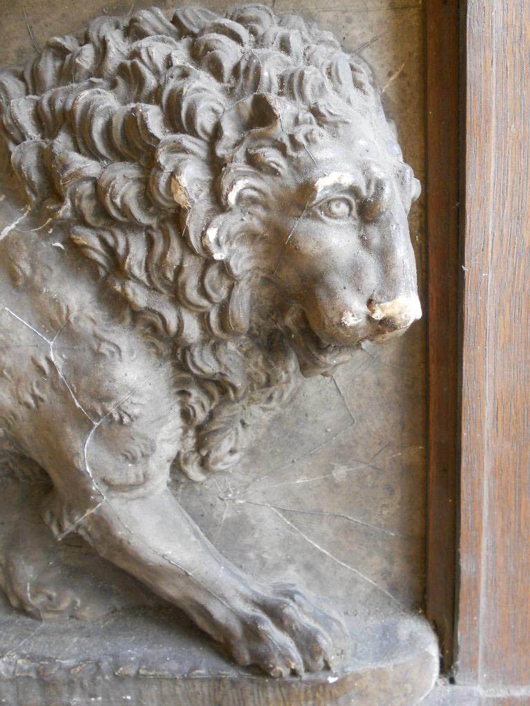 An oak frame for this almost 3dimensional plaster lion. Travail d'atelier. Original patina,some use,some wear,generally in good condition. 19th century Measurements:51,50cm wide x 39,50cm high