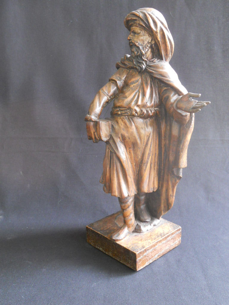 Fine wooden sculpture of a prophet sculped in lime at the end of the 18 th century. High:41cm Base 12,7cmx12cm
