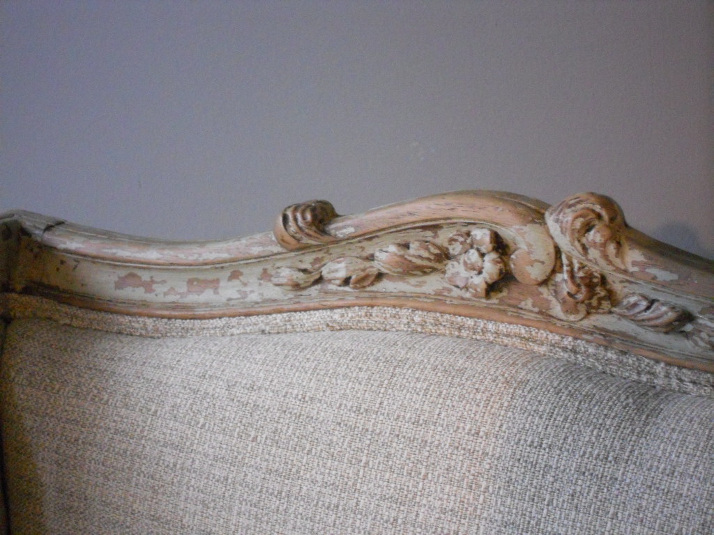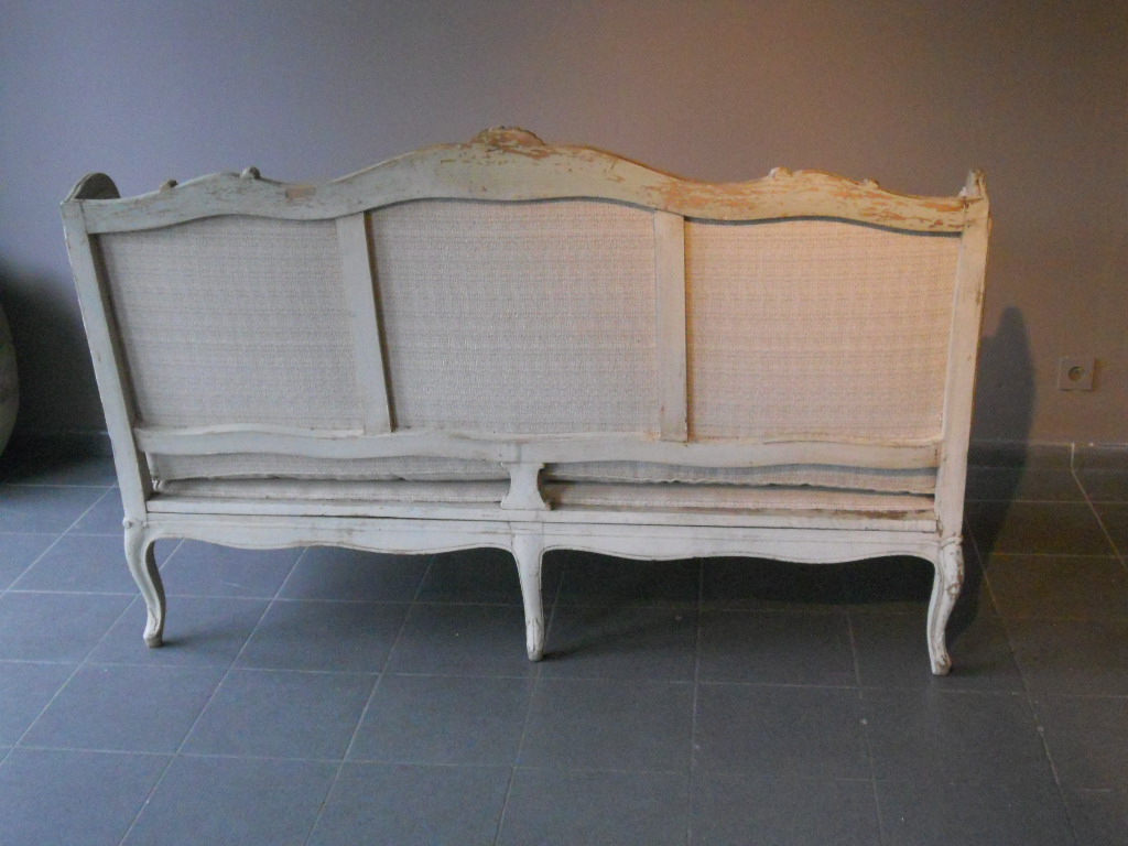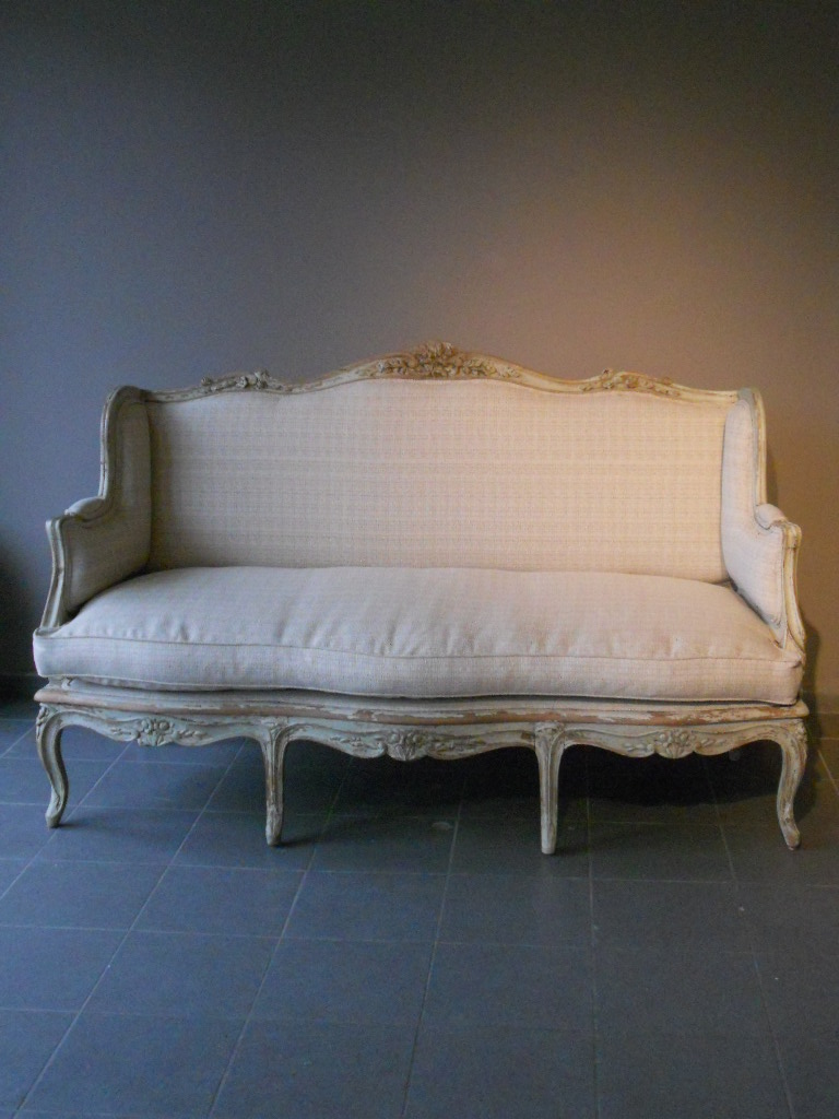 Very comfy French settee in completely reupholstered in a neutral cotton.Measurements:wide:178cm 106cm high and 70cm deep