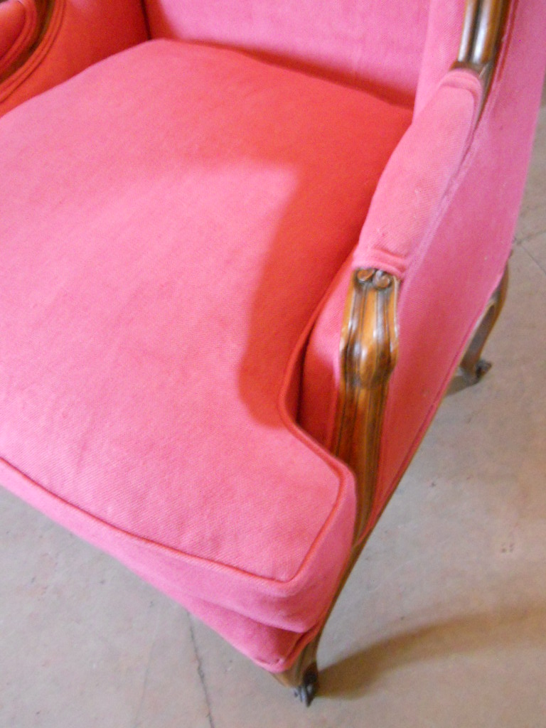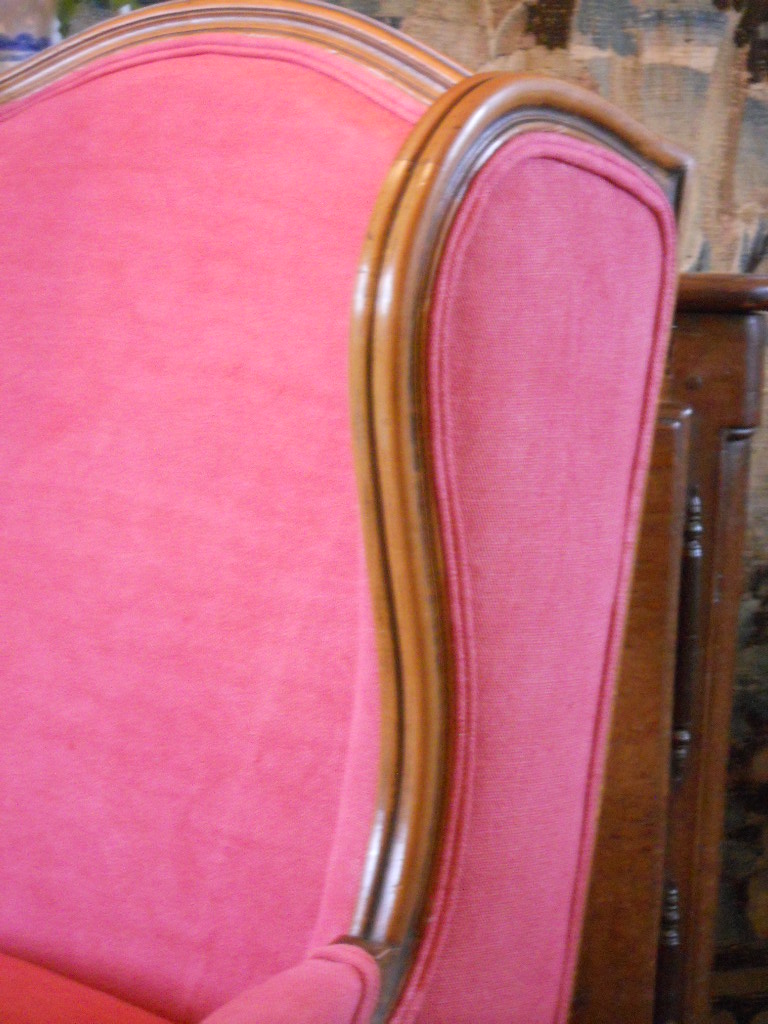 19th century french bergère upholstered in thick hand dyed "Framboise" linen SOLD
