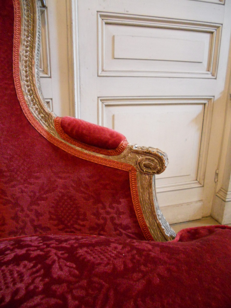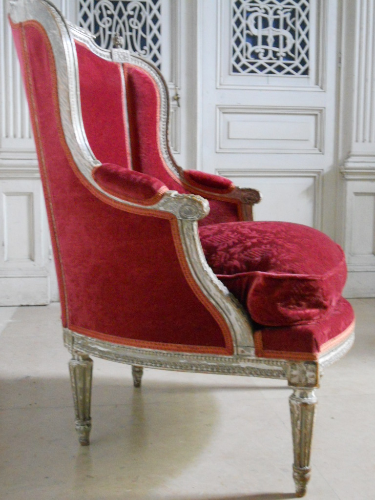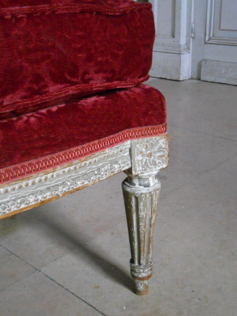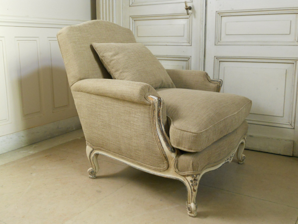 Very comfortable,and stylish!This bergère retains the original grey-white paint ,and a warm red Napoleon III-fabric in perfect condition.